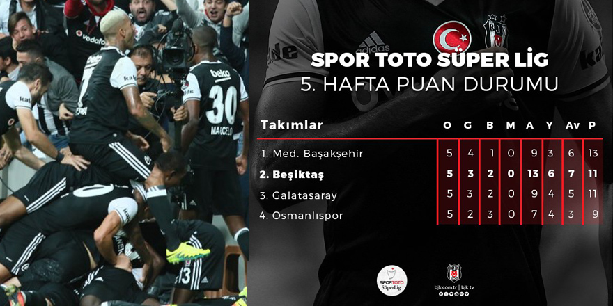 Beşiktaş 11 puana ulaşırken, averajla G.Saray’ın üstünde kaldı.
