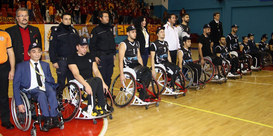 Galatasaray-Beşiktaş RMK Marine maçı öncesi iki takımın oyuncuları polis şapkalarıyla şehitlerimiz için saygı duruşunda bulundu.