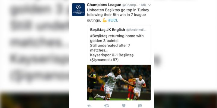Şampiyonlar Ligi’nden Beşiktaş paylaşımı