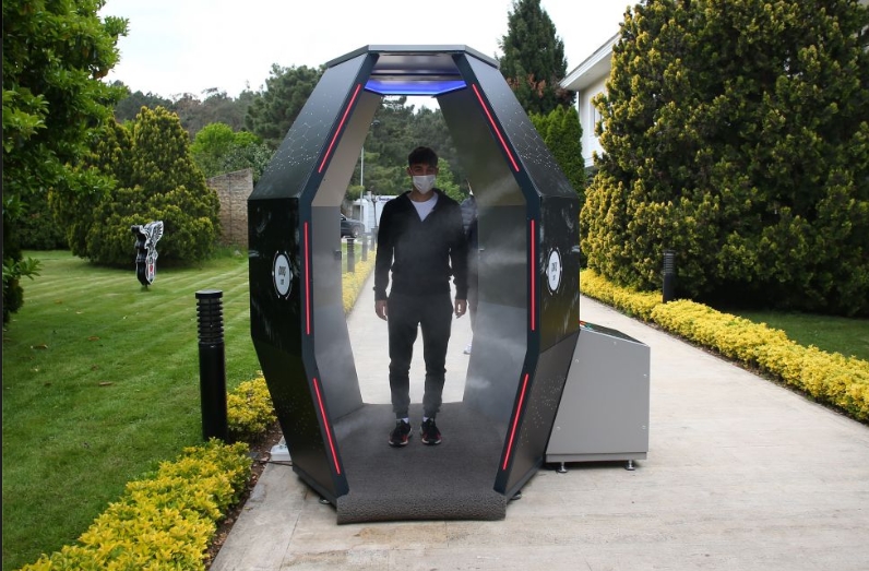 Ajans Beşiktaş – Teknik heyet ve siyahbeyazlı futbolcular ile Nevzat Demir tesis personeli, BJK Nevzat Demir Tesisleri’ndeki yaşamın Covid-19 salgınından koruması amacıyla tesise girişte otomatik dezenfekte kabinini kullanmaya başladı.