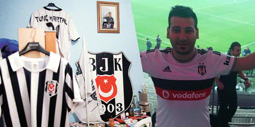 Tunç’un en fazla 4 metrekarelik odasının tek süsü Beşiktaş nevresimi, Beşiktaş bayrağı.