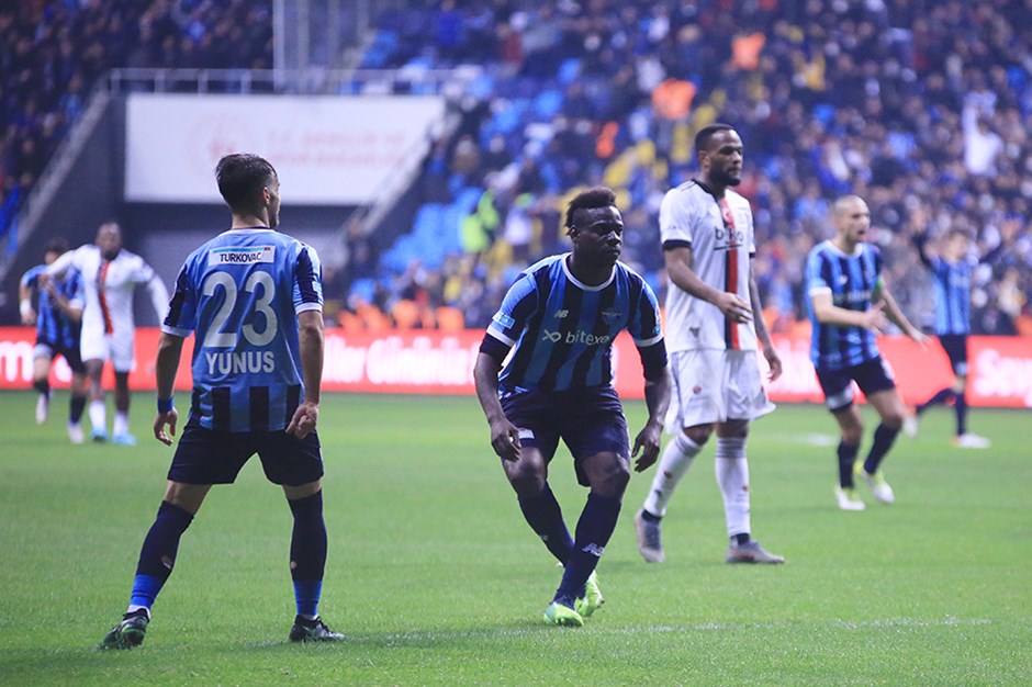 İkinci yarıda ise duraklamada Adana Demirspor Samet Akaydın’ın ikinci golüyle öne geçti. Ancak bu kez hakem Balotelli’nin kaleci Ersin Destanoğlu’nun görüş açısını kapattığı gerekçesiyle gol sayılmadı.