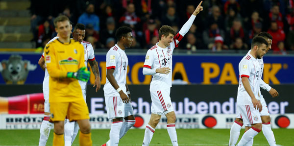 25. dakikada Freiburg’un kalecisi Alexander Schwolow’un kendi kalesine attığı golle 1-0 öne geçen Bavyera ekibi, 28. dakikada Corentin Tolisso, 54. dakikada Sandro Wagner ve 69. dakikada Thomas Müller ile goller bularak karşılaşmadan 4-0 galip ayrıldı.