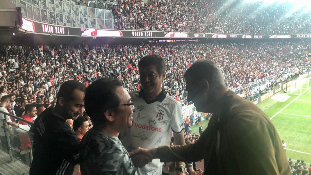 Beşiktaş’ın sponsorluk anlaşması imzaladığı Japon forması Mainichi’nin yetkilileri, Yeni Malatyaspor maçını izliyorlar.