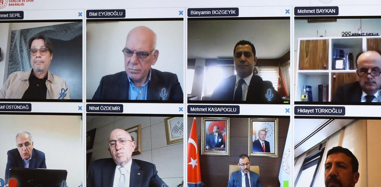 Ajans Beşiktaş – Gençlik ve Spor Bakanı Dr. Mehmet Muharrem Kasapoğlu, Türkiye Futbol Federasyonu (TFF) Başkanı Nihat Özdemir, Türkiye Basketbol Federasyonu (TBF) Başkanı Hidayet Türkoğlu, Türkiye Voleybol Federasyonu (TVF) Başkanı Mehmet Akif Üstündağ, Türkiye Hentbol Federasyonu (THF) Başkanı Bilal Eyuboğlu, Kulüpler Birliği Vakfı Başkanı Mehmet Sepil ve Spor Hizmetleri Genel Müdürü Mehmet Baykan ile video konferans aracılığı ile toplantı düzenledi. Toplantıda, liglerin geleceği, sporcu sağlığı ile ilgili alınması gereken tedbirler, kulüplerin bu süreçte yaşayacağı finansal sorunlar ve halk sağlığı konuları ele alındı.